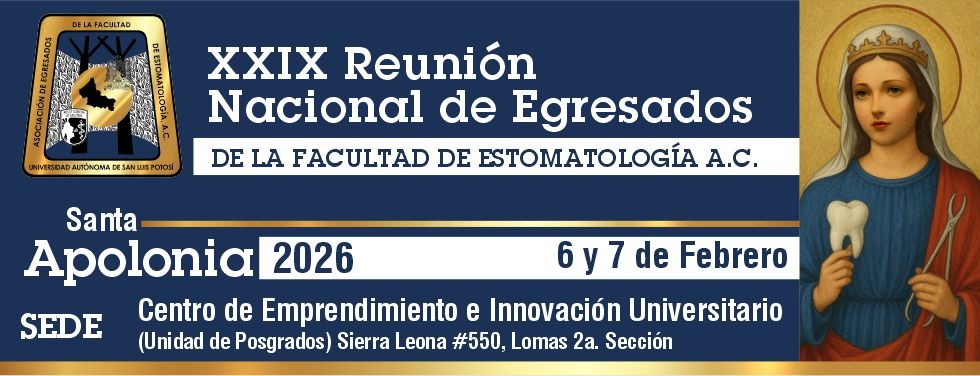 La Asociación de Egresados de la Facultad de Estomatología A.C. cumple 29 años de su fundación este 2026. El Dr. Jesús Martínez estrada fue el primer presidente de esta asociación que tiene como objetivo reunir a todos los egresados de la Facultad de Estomatología de la UASLP en un evento académico en torno a los festejos del 9 de febrero, día que se celebra a Santa Apolonia, patrona de las dolencias dentales y del odontólogo, enriqueciendo el acervo científico y cultural de nuestra comunidad, con diversas actividades que incluyen conferencias magistrales, eventos deportivos y culturales.